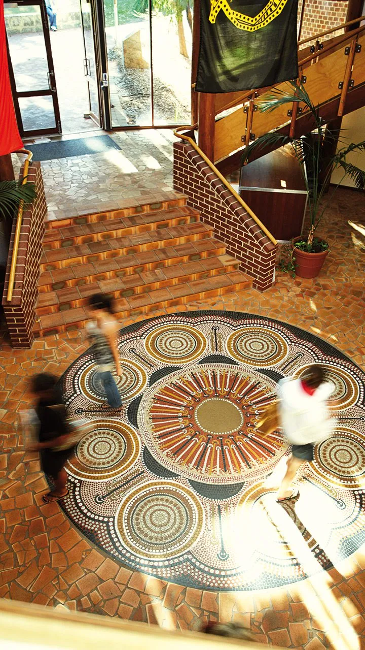 At Curtin, this spirit of resilience and determination glows throughout our Centre for Aboriginal Studies (CAS). Established 50 years ago – and the first university school dedicated to Aboriginal tertiary education and research in Australia – CAS is well recognised by its logo, the curled Karda (goanna), representing the continuity of life. Dedicated to the memory of Nyungar elder and resistance leader Midgegoroo, the Centre’s lobby is also a visual tribute that embodies the spirit of ‘Strength, Vision & Legacy’.