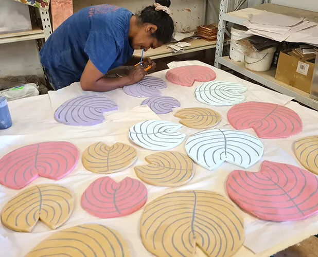 Jan Griffiths creating the Billabong installation.