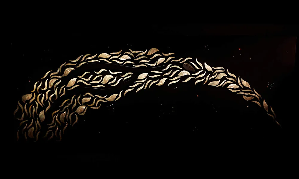 Oongoonorr, also known as the Milky Way, contains many cultural symbols including totems, and stories about the stars which are passed down from generation to generation. Oongoonorr is comprised of 220 pieces collected from land and sea; its design based on traditional stories from Bard ancestors.