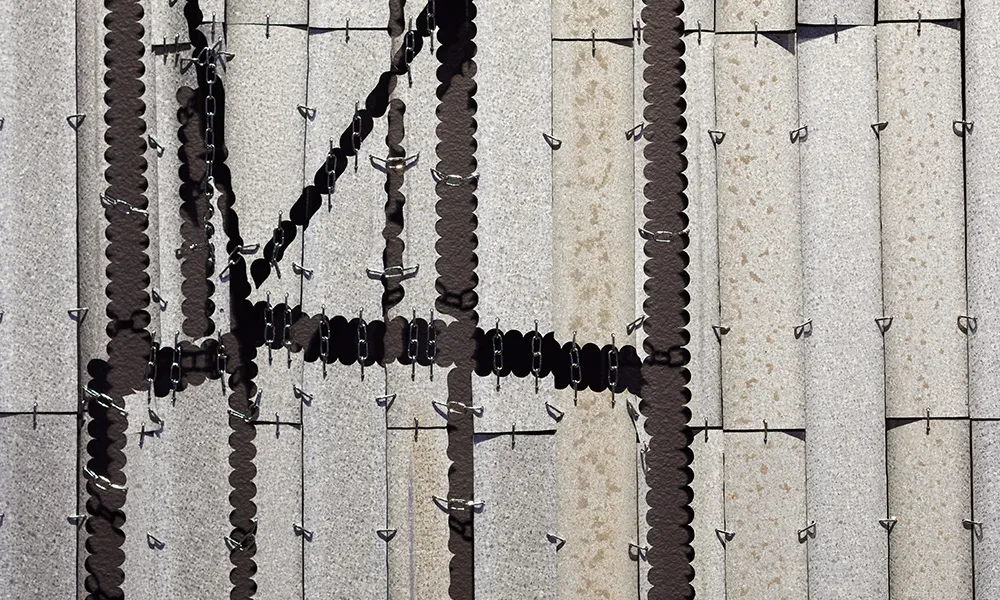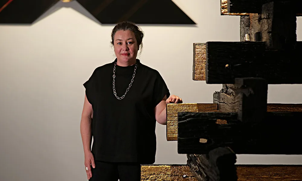 Perth-based Melissa Cameron, who creates socially aware/protest art, spent nine months making Juukan Tears, a response to the destruction of the sacred site and the silencing of First Nations people. The artwork depicts the capital’s tallest building, the Rio Tinto office tower (also known as Central Park), drawn in linked panels of galvanised iron, hand-cut from her backyard shed.