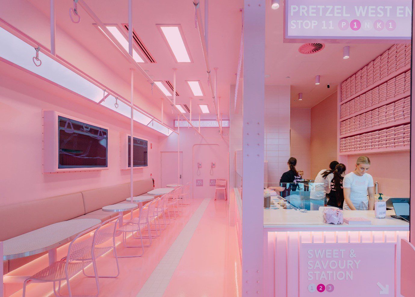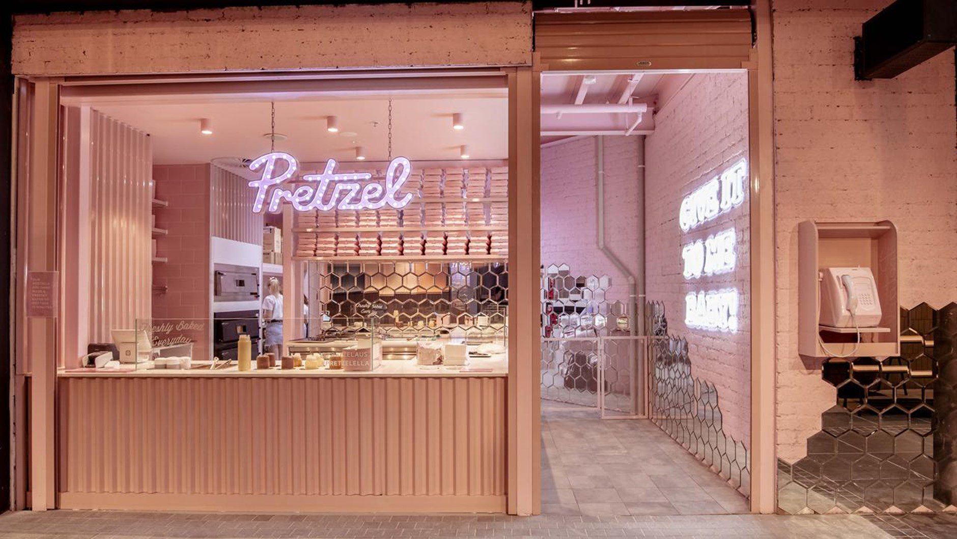 While all Pretzel stores are styled differently, each have a distinct pink vibe.