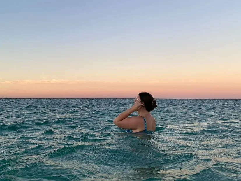 Following through with a resolution to start her day at the crack of dawn, the Curtin graduate and TikTok creator decides to “go for it” and take a watery plunge at her local beach before the rest of Perth wakes up.