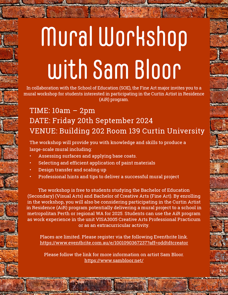 Contact Lisa via lisa.paris@curtin.edu.au/Ph 0412 754 796